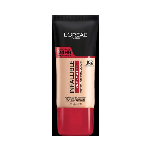 L'ORÉAL PARIS Infallible Pro-Matte Blendable Foundation, Oil Free, 102 Shell Beige, 1 fl. oz.