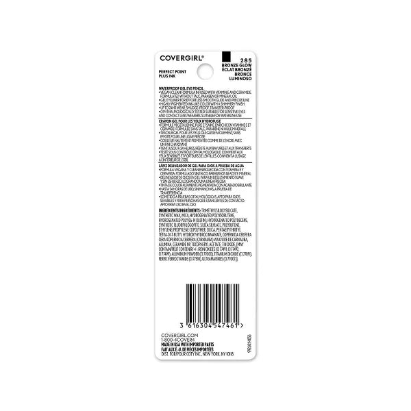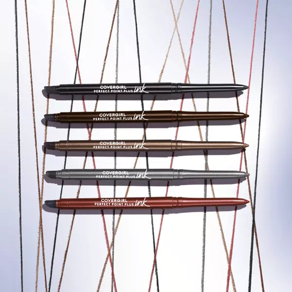 The Covergirl Perfect Point Plus Ink Gel Eye Pencil glides like gel and stays on like ink. Formulated with a clean vegan formula that's infused with vitamin E and ceramide, this eyeliner doesn't contain parabens, talc, mineral oil, or fragrance. The highly pigmented matte and shimmery shades provide instant color payoff in one stroke. The Covergirl makeup gel formula glides on smoothly without skipping, dragging, or tugging for easy application and features a precise tip so you can create a perfect line every time. Smudge-proof and transfer-proof, this Covergirl eye pencil offers flawless wear for up to 24 hours.
