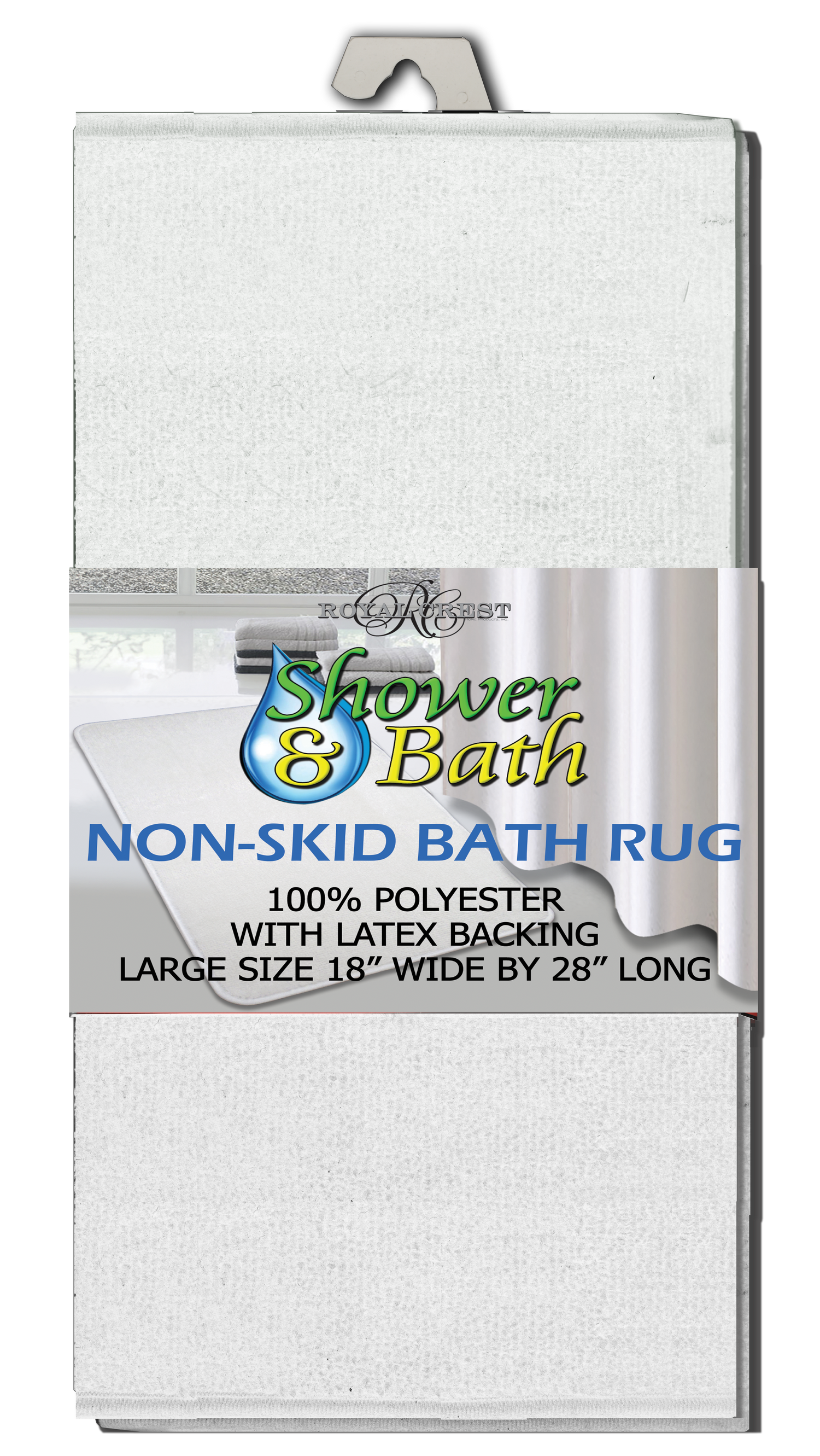 Elevate your bathroom with the Royal Crest Polyester Bath Rug. This large 18 by 28-inch rug features a non-slip latex backing for safety and is made from 100% polyester for durability and comfort. Its classic white design adds a clean, elegant touch to any space.
