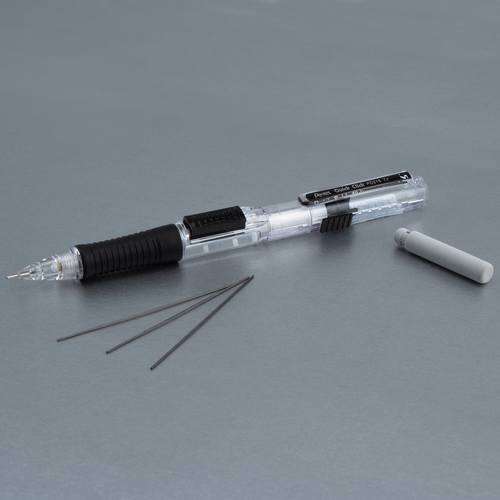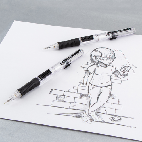 Pentel® Quick Click™ is the fast and convenient side-advance mechanical pencil! The quick side-advance button advances lead without interrupting your writing. Easy to use slide extends & retracts the long-lasting eraser. Latex-free eraser won’t smudge, ghost or tear your paper. Fun clear barrel design with bright color accents. Latex-free grip for hours of comfortable writing. Preloaded with Pentel Super Hi-Polymer HB lead; never needs sharpening, is super strong and writes a clear dark line. Available in 0.5mm and 0.7mm. Backed by a Limited Lifetime Warranty
